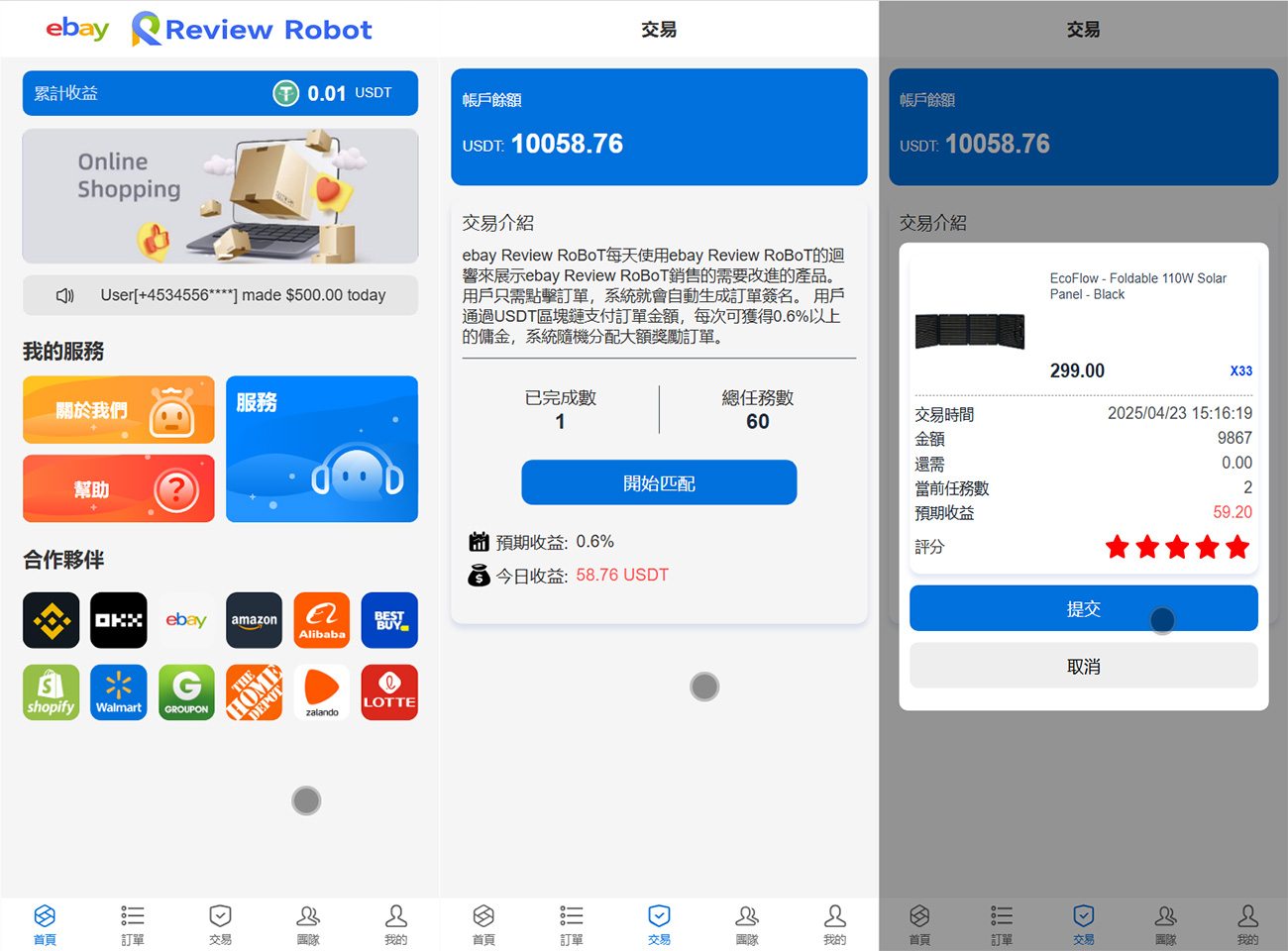ebay国外刷单多语言源码/Review RoBoT刷单抢单投资理财源码/三级分销+派单卡单/前端vue纯源码+后端php