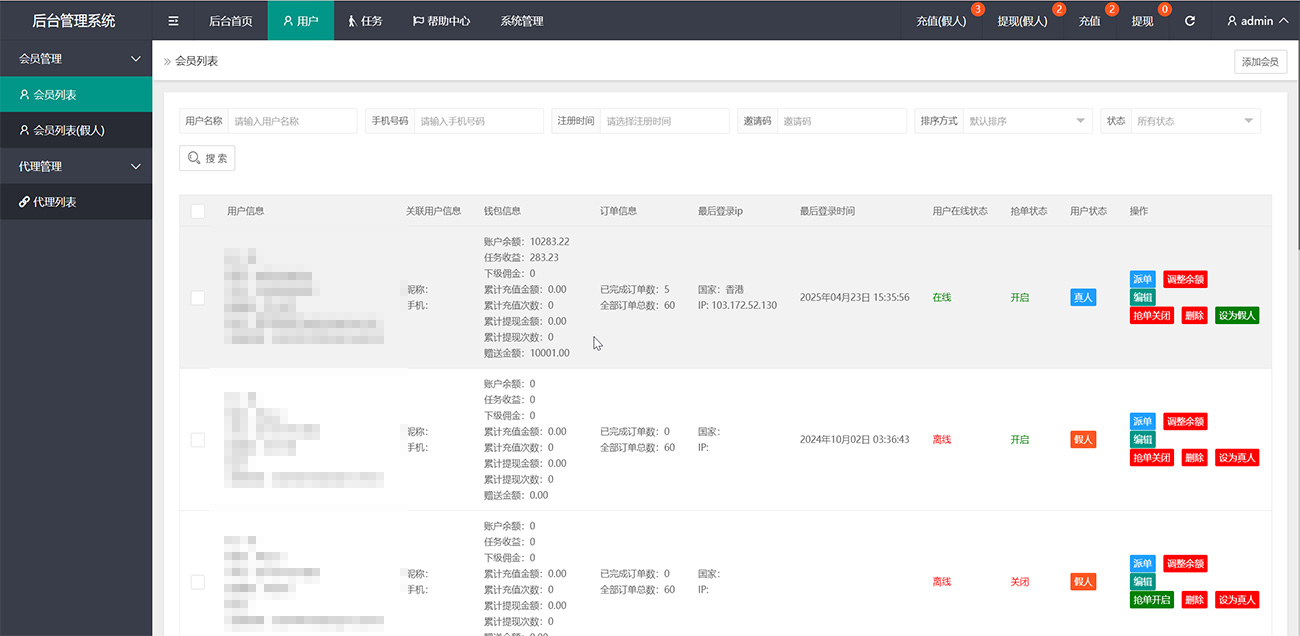 UI看着还行,后台也是一成不变的老框架,没有啥亮点,只有派单、卡单的功能,没有连单,属于基础刷单盘